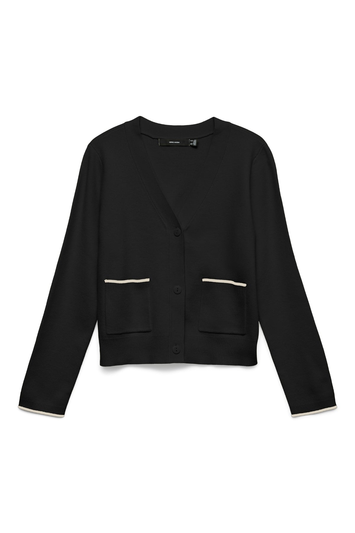 Auksinis V formos kaklo kontrastinis megztinis - juodas W. Beržas