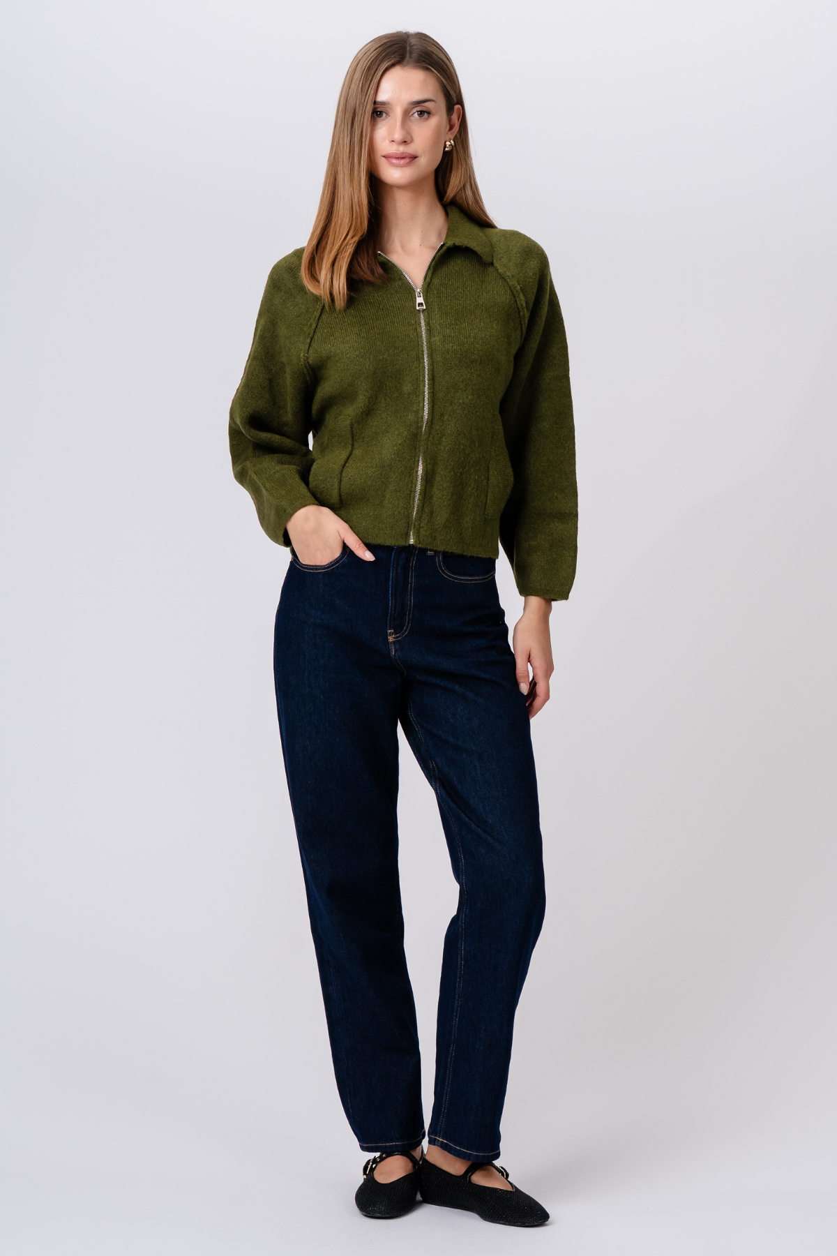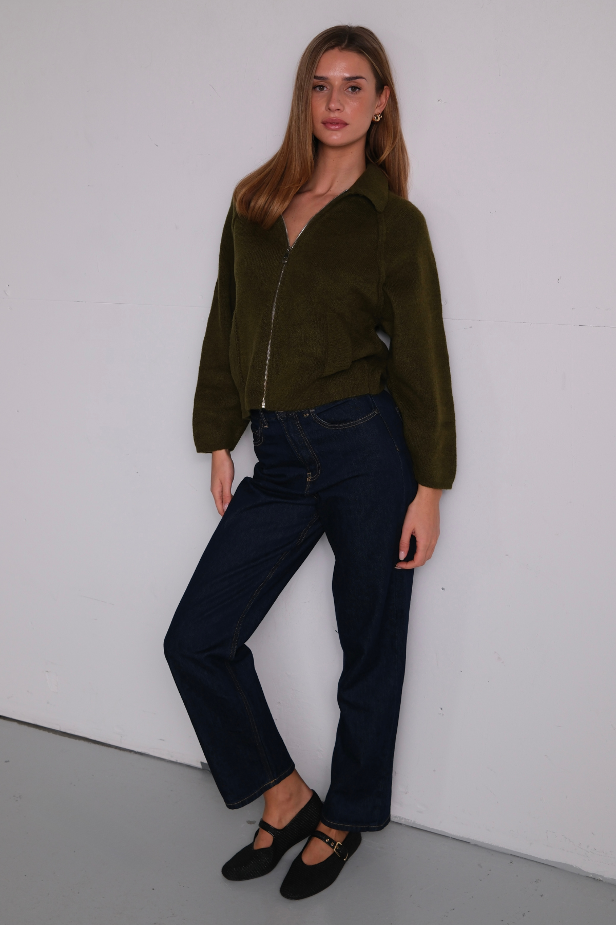 Selma Knit Zipper - Khaki