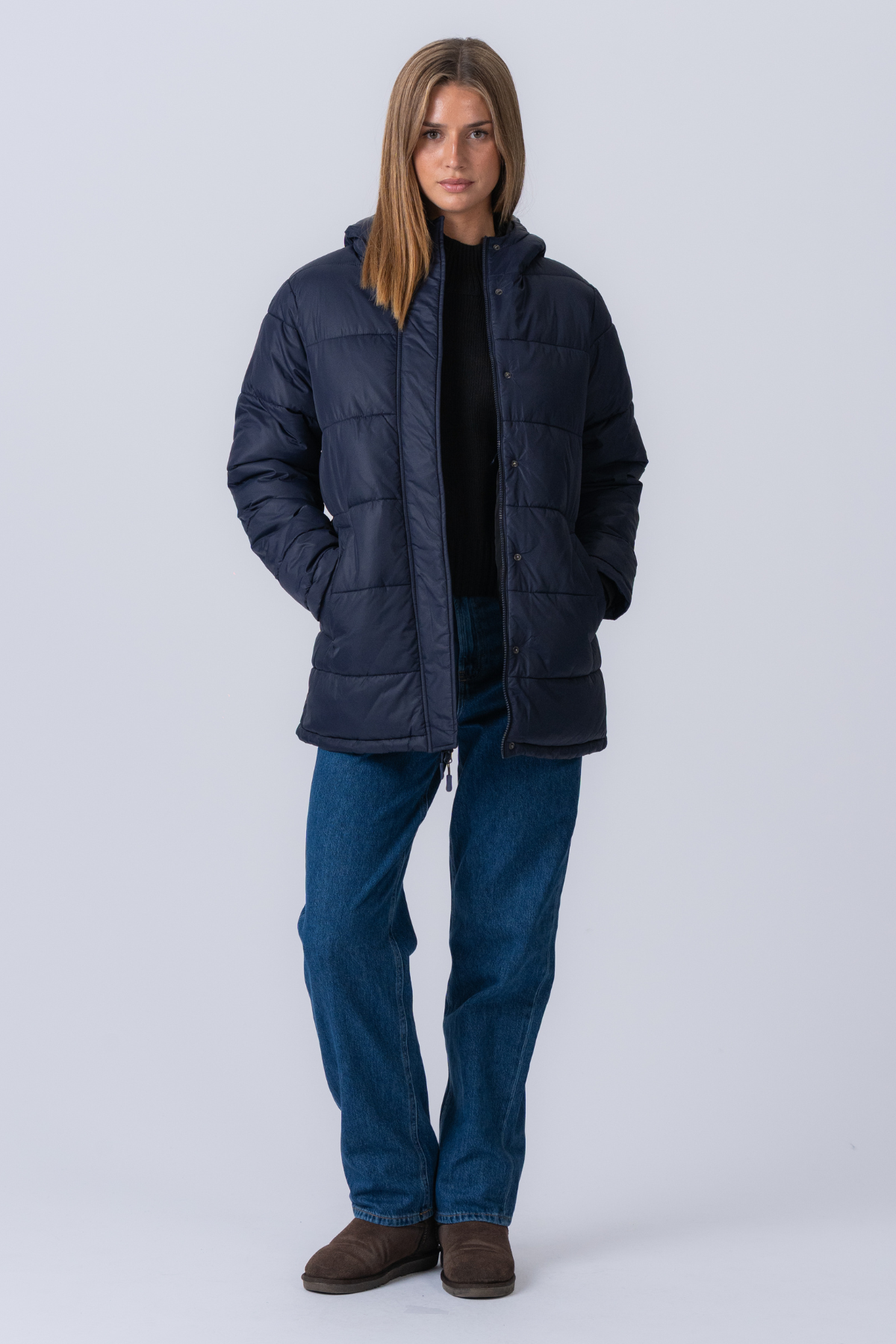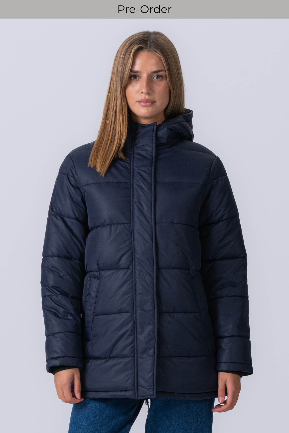 Do not let the cold dictate your style. Define it. Add this essential Navy Long Puffer Jacket to your wardrobe today.