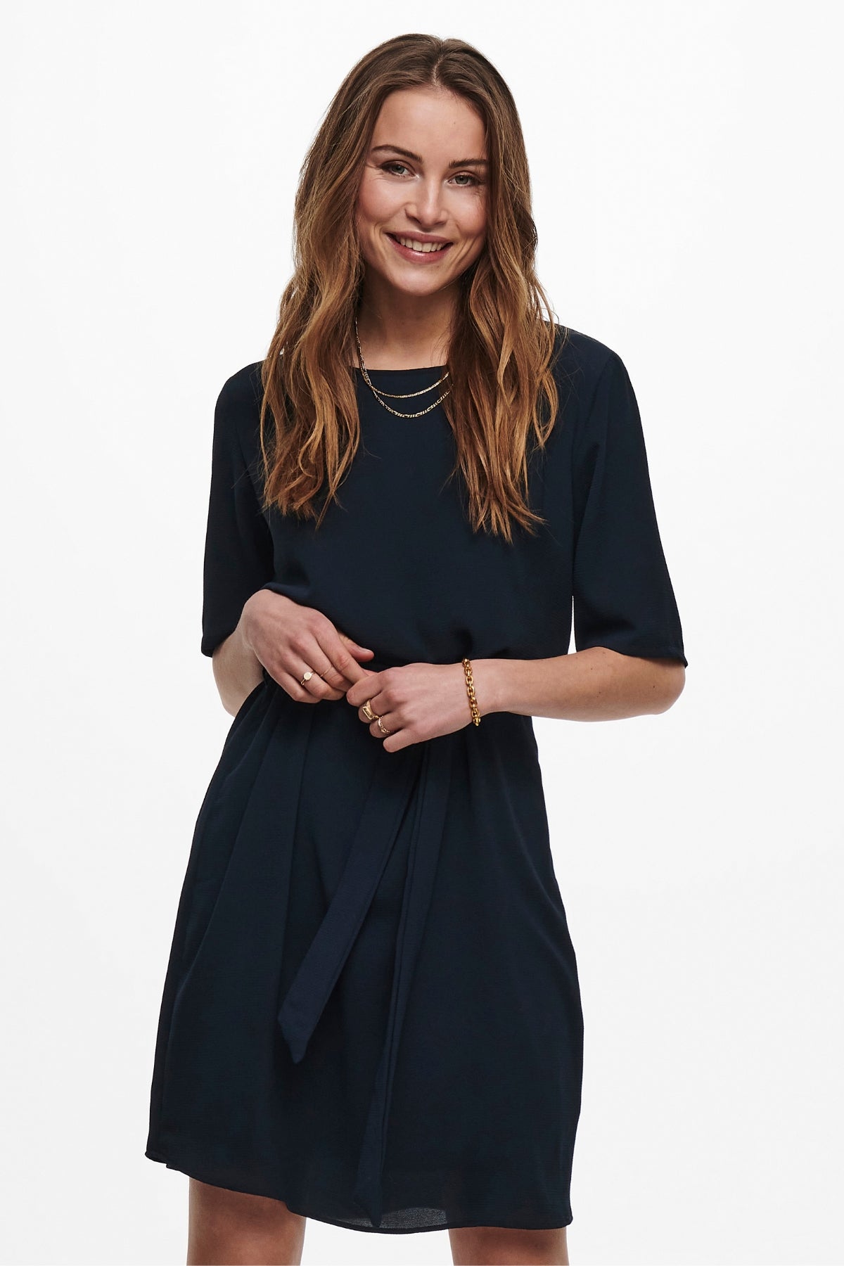 Amandos diržo suknelė - tamsiai mėlyna