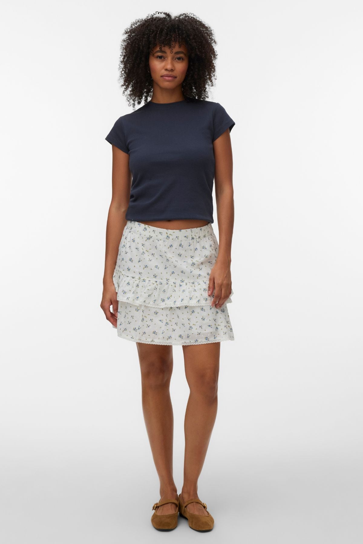 Dėl trumpo ilgio ir glostančio silueto jis yra universalus. Sudėtingas mėlynos spalvos gėlių raštas prieš baltą spalvą background sukuria nesenstančią išvaizdą, kurią lengva stilizuoti su daiktais, jau esančiais jūsų spintoje. Nesvarbu, ar siekiate atpalaiduojančio savaitgalio įvaizdžio, ar ko nors labiau nušlifuoto socialiniam renginiui, šis sijonas lengvai prisitaikys prie jūsų poreikių. Aukštos kokybės Vero Moda konstrukcija užtikrina, kad spalvos išliks ryškios, o forma išliks tikra, skalbimas po plovimo.