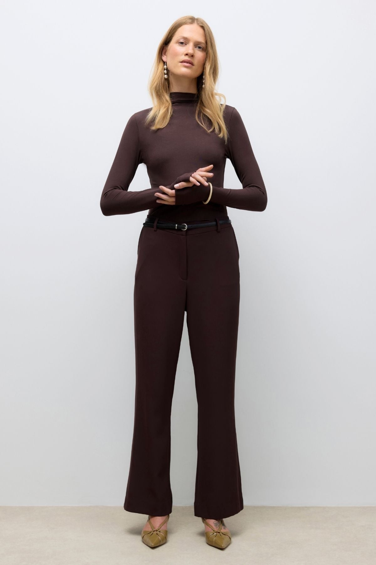 Tikrasis Upamos grožis Pants slypi jų neįtikėtiname universalume. Gili, sodri šokolado slyvų spalva yra sudėtinga alternatyva tradiciniam juodajam ar tamsiai, gražiai suporuojant įvairias spalvų spektrą. Sukurkite galingą biuro ansamblį, susibūrę juos su traškiais baltais marškiniais ir vienu iš mūsų nepriekaištingai pritaikytų Blazeriai. Norėdami atsipalaiduoti savaitgalio vibe, tiesiog pereikite prie jaukaus megztinio ir mėgstamų sportbačių. Išvažiuoti vakare? Šilkinė kamera ir kulniukai akimirksniu paverčia jūsų išvaizdą. Šie pants nėra tik drabužių gabalas; Jie yra universalios ir darbštaus drabužių spintos pagrindas.